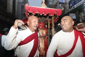 Recognized as Nepal’s longest festival procession, the Rato Machhindranath Jatra follows a grand tradition. As part of the festivities, the deity has been enshrined in the chariot today. The chariot procession will commence four days later, on Thursday, Baisakh 18, when the people of Lalitpur will celebrate the revered event.
