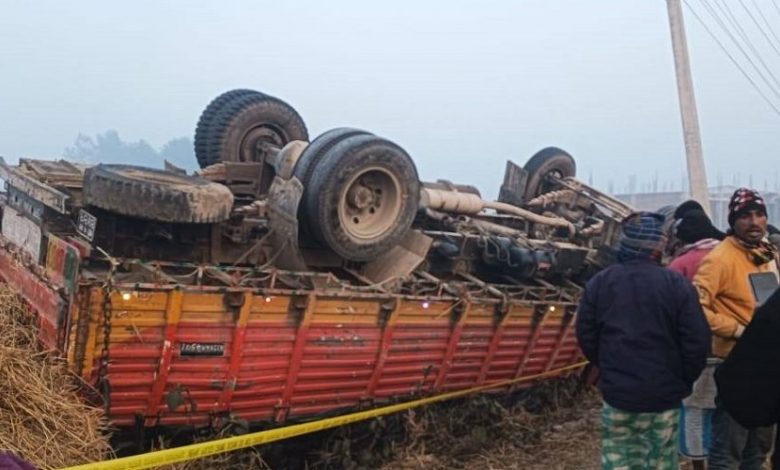 The accident occurred as the marble carrying truck (Ko 1 Kha 4541) turned turtle along the Postal Highway.