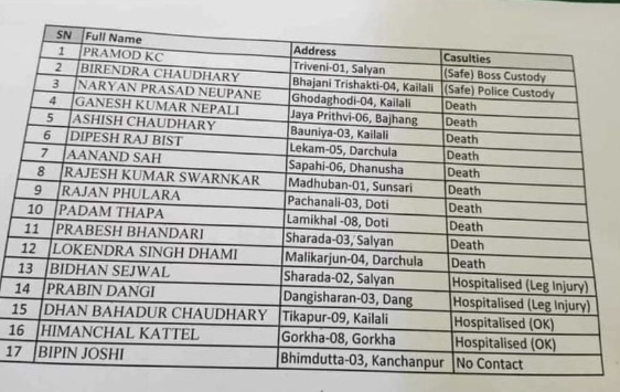 As many as 10 Nepalis were killed on October 7. They were Lokendra Singh Dhami and Dipesh Raj Bista from Darchula, Padam Thapa and Rajan Phulara from Doti, Ashish Chaudhary, and Narayan Prashad Neupane from Kailali.