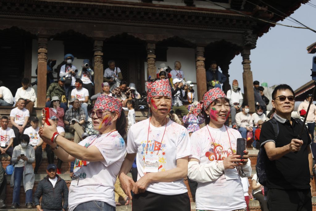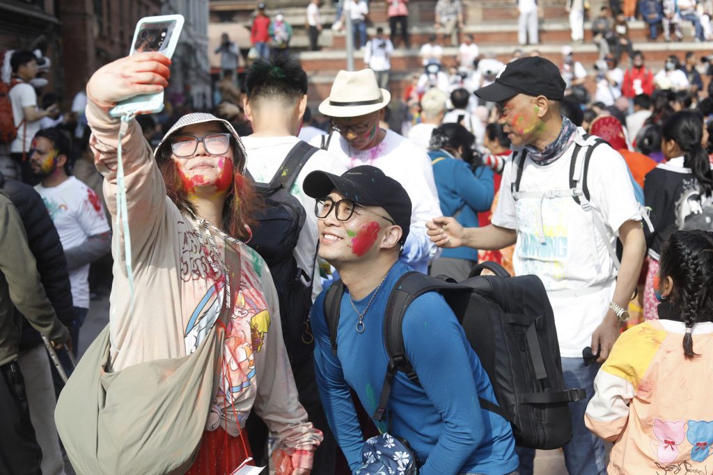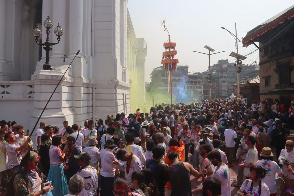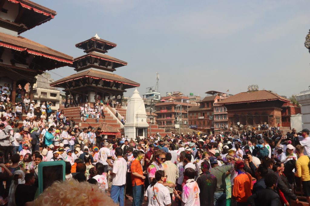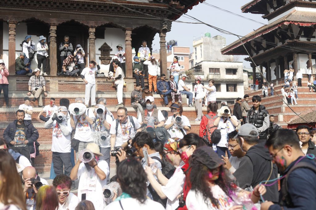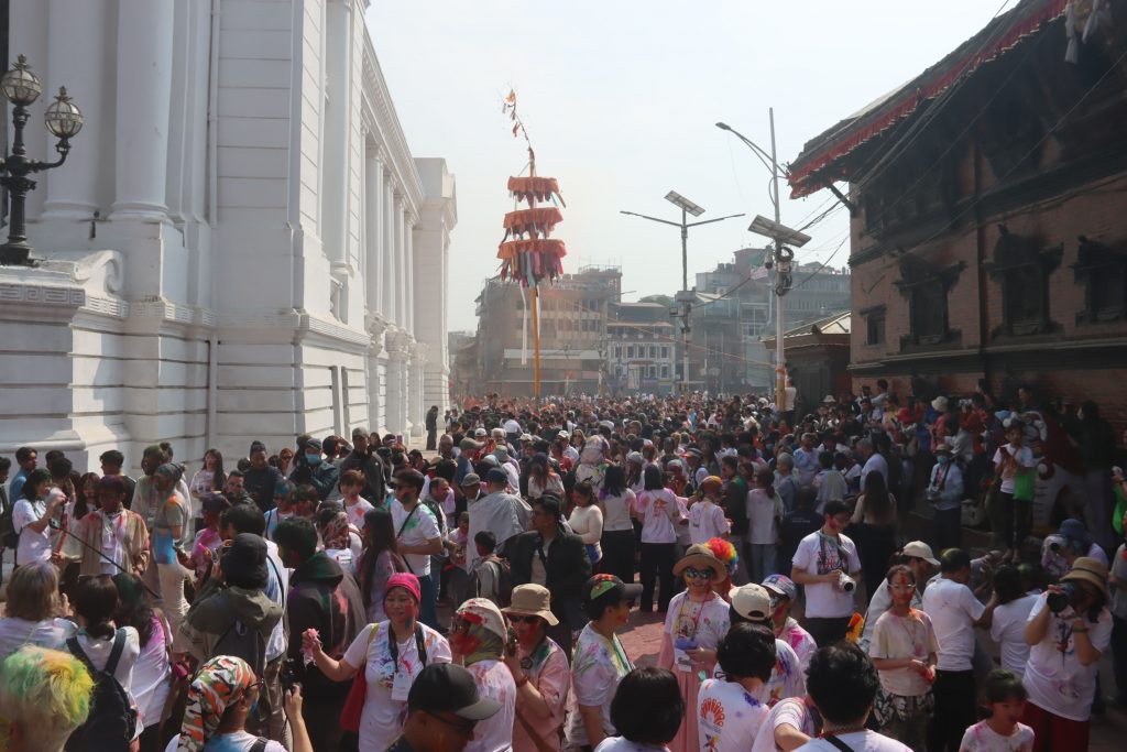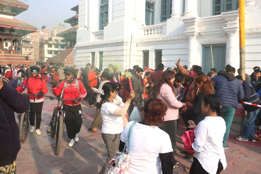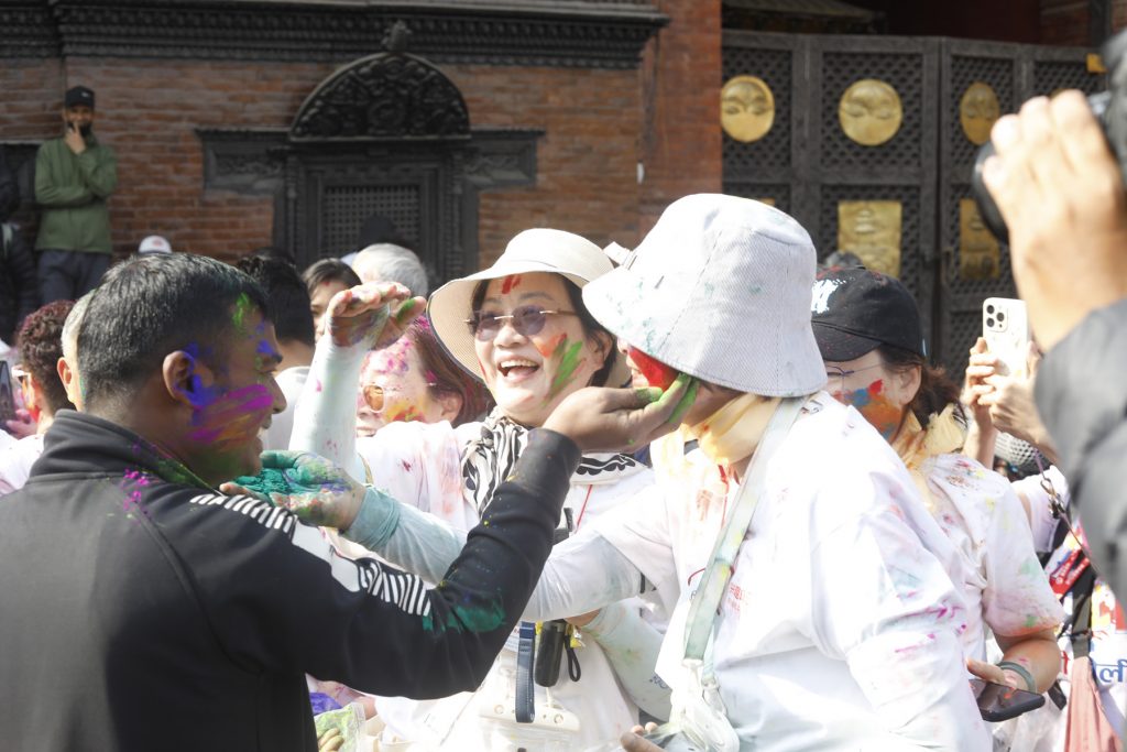 Today, people gathered in Basantapur, a historic area where individuals visit for fun and peace in hectic schedule, to celebrate Holi. Foreigners visiting the place also enjoyed the moment.