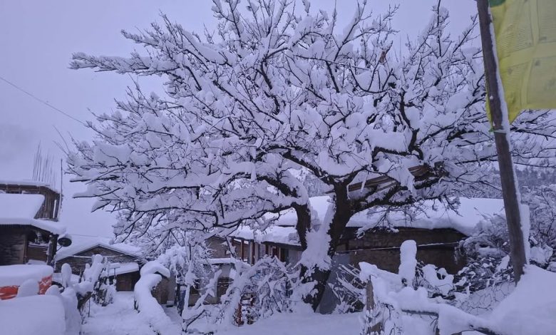 The Kagbeni-Korala roadway has been blocked due to adverse weather. The snow has piled up as high as two feet. Chief of Agriculture Section at Gharapjhong rural municipality, Roshan Thakali, informed that apple, buckwheat, barely and potato farming would thrive with the winter snow.