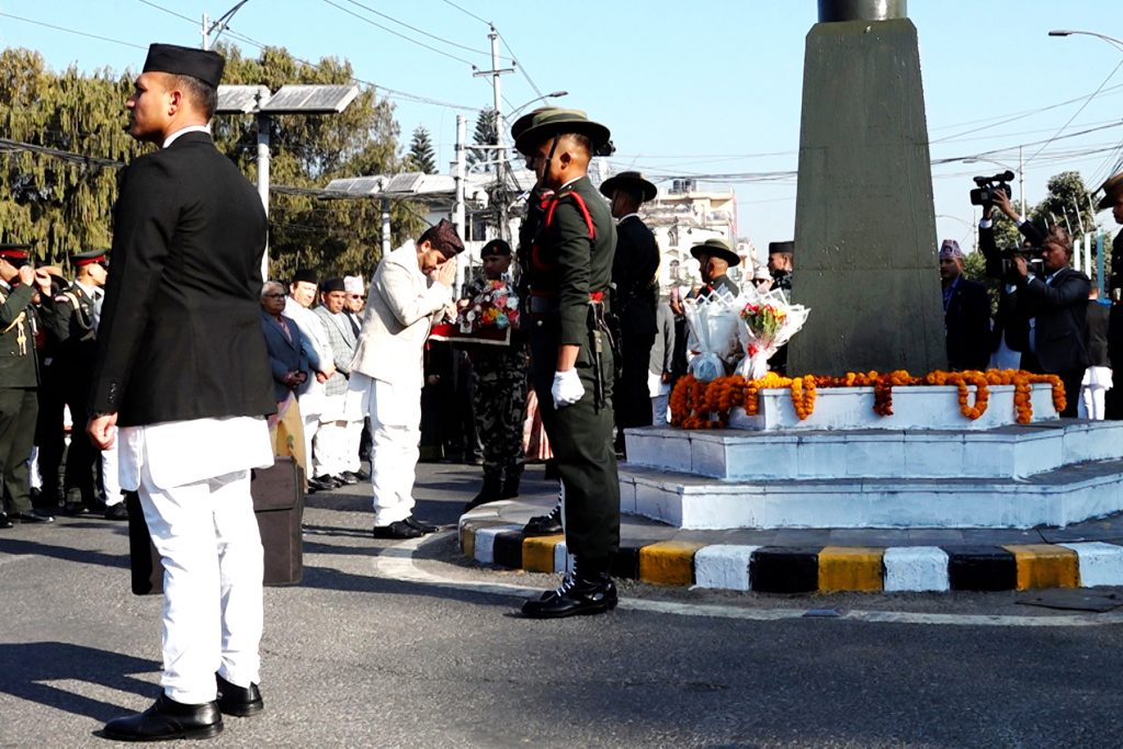 He paid tributes by laying a wreath at his statue in front of the west gate of Singha Durbar amidst a function held this morning to mark the Prithivi Jayanti or National Day.