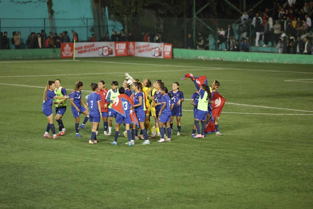 After a 1–1 draw in regulation time, Nepal’s Sabita Ranamagar, Rashmi Kumari Ghising, and Nisha Thokar converted their spot-kicks with precision.