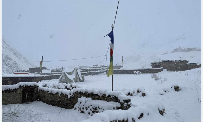 The tourists visiting Larke pass have stayed halfway after the snowfall in Manaslu region.