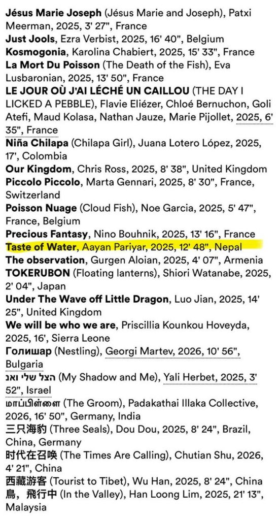 Produced through a collaborative effort between Risalla Production, Everest Film Academy, and Simal Cinema, the film will represent Nepal at one of the world’s oldest and most influential platforms for short-form filmmaking.