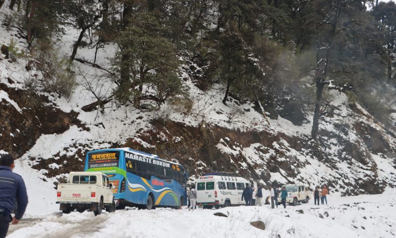 In western Nepal, the Mid-Hill Highway in Rukum Purba, particularly the Bhume–Patihalna section, has been blocked by persistent snowfall since last night.
