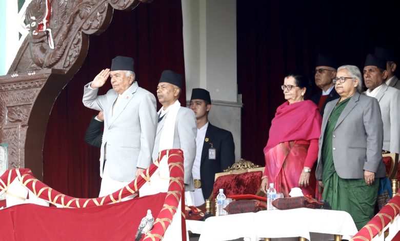 President Ramchandra Paudel attended a special ceremony held today at the Army Pavilion at Tundikhel, Kathmandu to mark National Democracy Day-2082 BS.