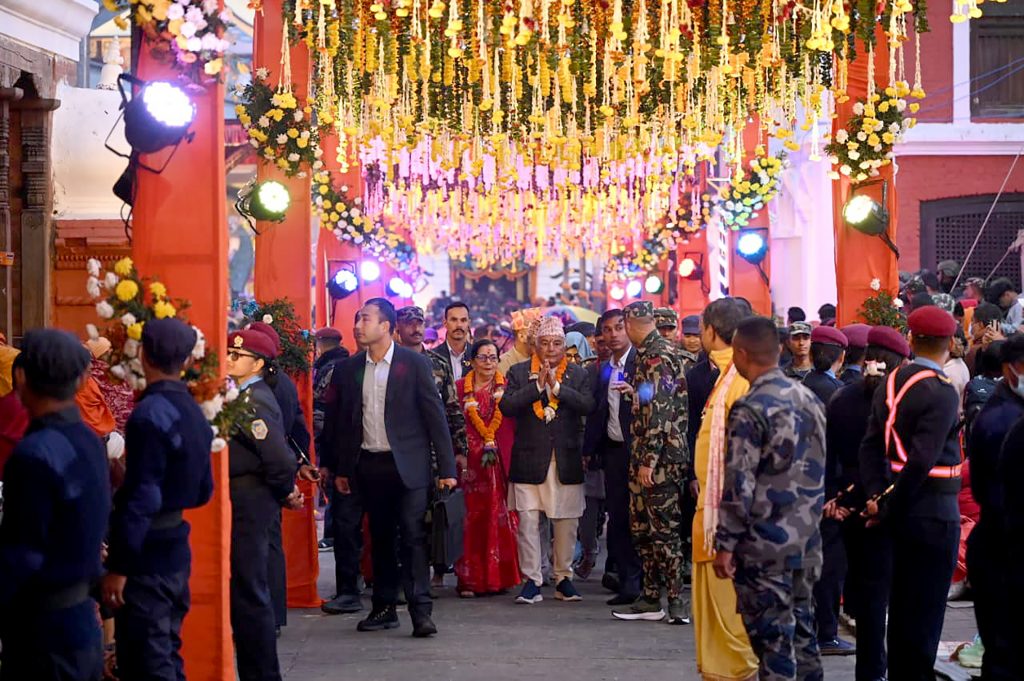 Also the Chairman of the Pashupati Area Development Trust (PADT), the Minister for Culture, Tourism and Civil Aviation, Anil Kumar Sinha, ministry secretary, PADT office bearers, local level representatives, and high level officials of the Guthi Sansthan welcomed President Paudel in the temple premises.