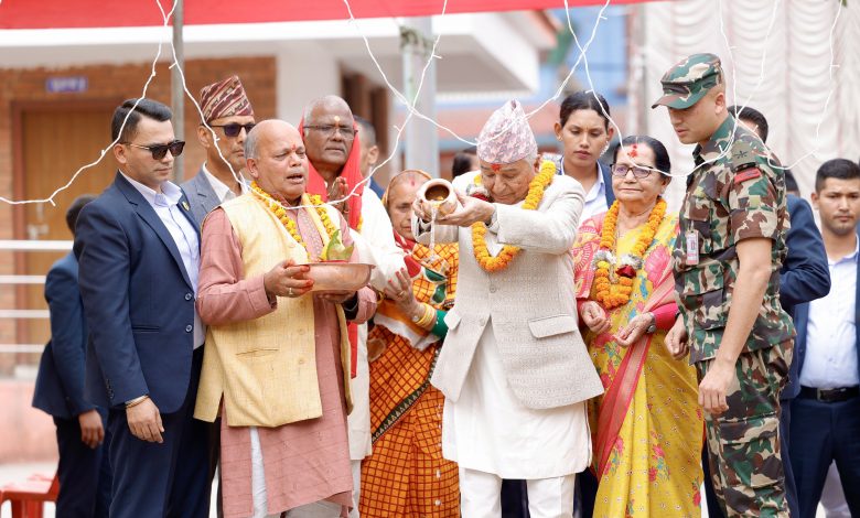 The President was accompanied by First Lady Sabita Paudel, and was welcomed by National Assembly member Bishnu Devi Pudasaini, officials from the Pashupati Area Development Trust, and representatives of the Guhyeshwari Chhath Puja Committee.