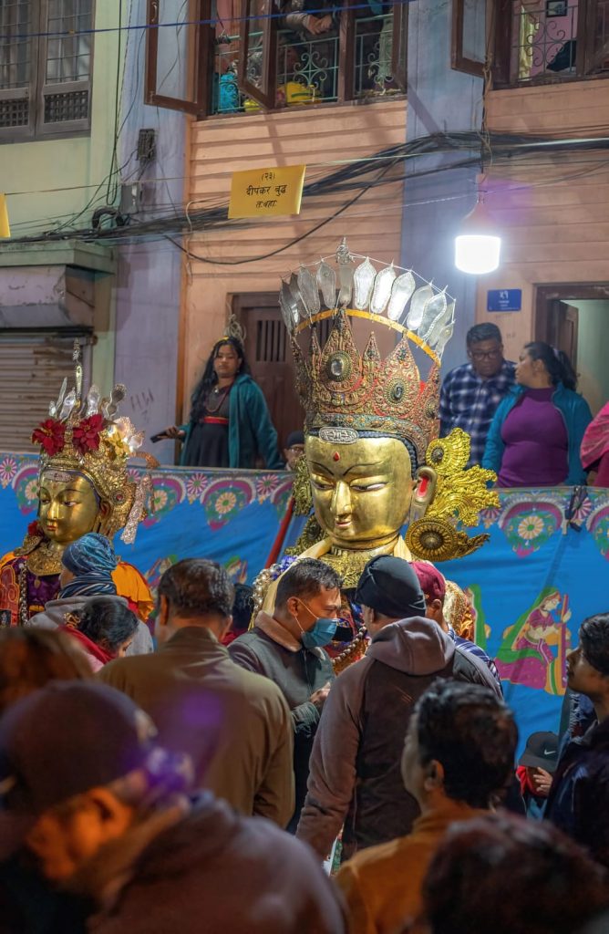 Devotees carry 126 revered statues of God’s from various bihars and Mahabihars in and out of lalitpur.