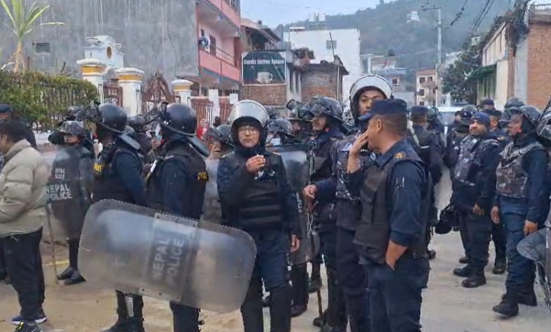 A heavy presence of security personnel can be seen particularly in the Bhaktapur area, around Oli’s residence.