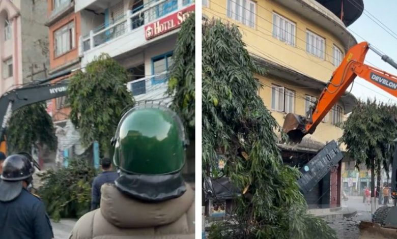 The Road Division Office, Hetauda started breaking the structures early this morning using a JCB machine to widen the main bazaar area.