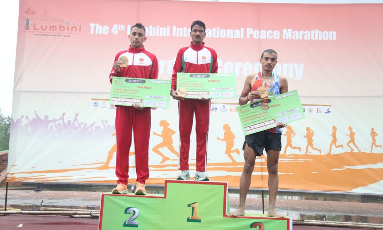 He completed the 42-kilometer distance in 2 hours 17 minutes 55 seconds. In the competition organized by the Nepal Olympic Committee and supported by the Ministry of Culture, Tourism and Civil Aviation, Lumbini Development Fund, Chinese Embassy in Nepal and Lumbini Cultural Municipality, Sushil Kumar Shahi of TAC came second with a timing of 2 hours 18 minutes 16 seconds.
