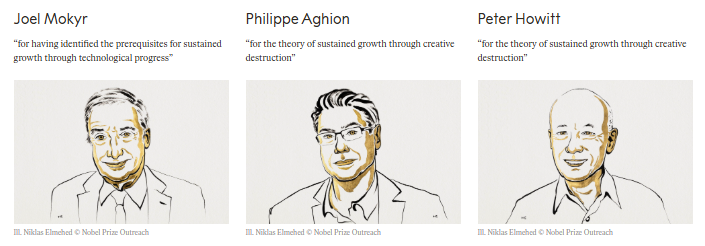 Joel Mokyr, Philippe Aghion and Peter Howitt have been jointly awarded the 2025 Nobel Prize in Economic Sciences for their influential research on how innovation and the process of “creative destruction” fuel long-term economic growth.
