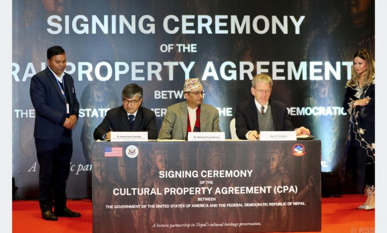 Nepal and the United States signed a landmark bilateral Cultural Property Agreement to safeguard Nepal’s rich cultural heritage and preventing the illicit trafficking of archaeological and ethnological artifacts.