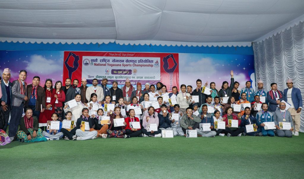 Nepal Yoga Sports Federation concluded the 7th National Yogasana Sports Championship on Saturday in the federal capital, Kathmandu. A total of 246 yoga sports players, both male and female, from across the country participated in the contest, representing their respective provinces. The competition was conducted separately for male and female.